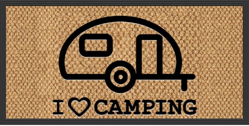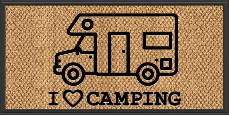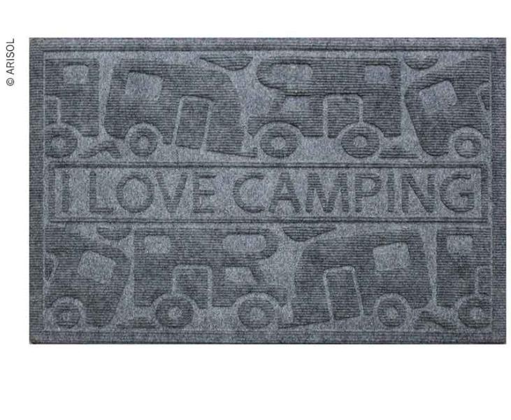 Wycieraczka KERA KAMP 40x60cm, szara, PP / guma, motyw: samochód kempingowy / przyczepa kempingowa